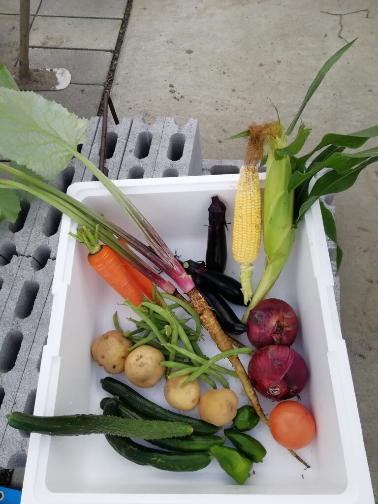 育てた野菜は持ち帰ることができます。自然あふれるサエもん村で育てた有機野菜をぜひご賞味ください。